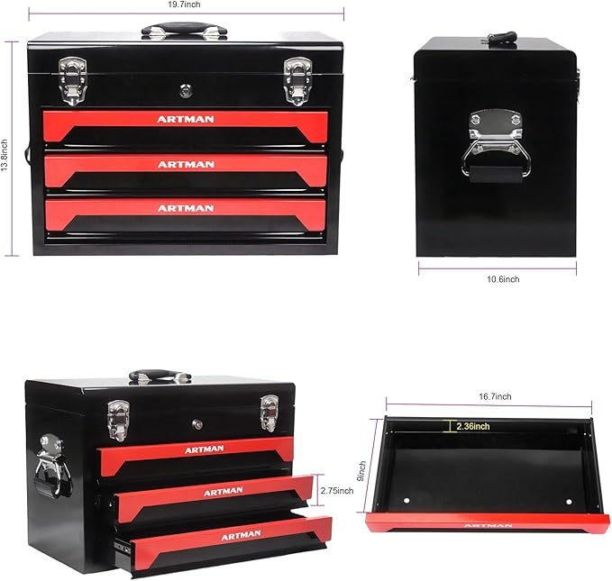 20″ Portable 3 Drawer Steel Toolbox with 439 tools