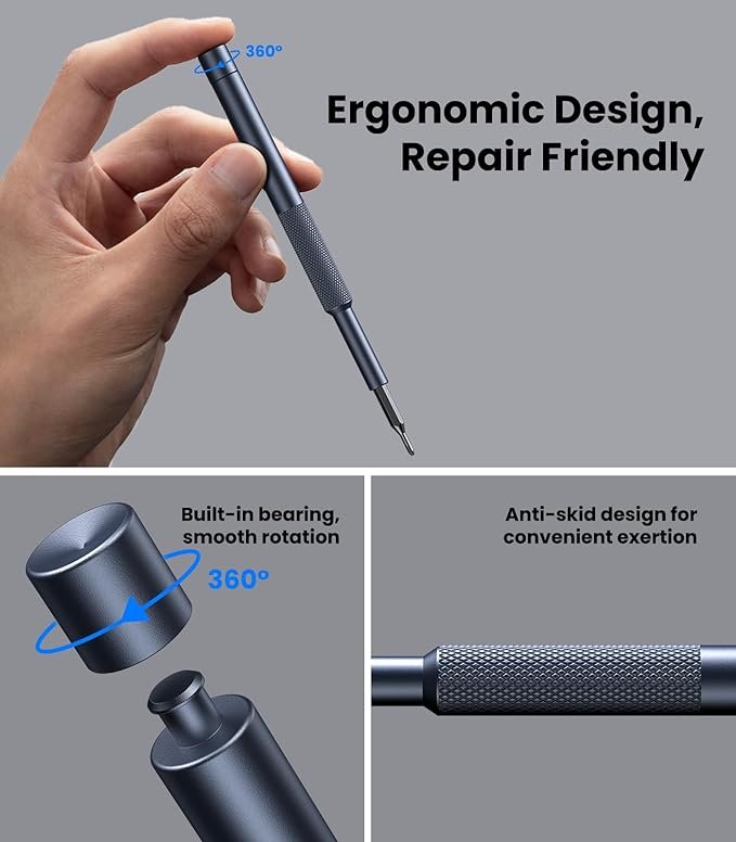 I originally picked this up to replace a lost eyeglass screwdriver—but quickly realized it’s way more versatile. The variety of bits covers everything from phones to laptops to the Ring doorbell. The tips are strong and magnetic, which really helps with tiny screws. The handle is comfortable to use, and the swivel top makes it easy to get the job done. Love the compact case with labeled slots—it keeps everything organized and ready to go. For the price, this kit is a steal and now a permanent part of my tool drawer.
